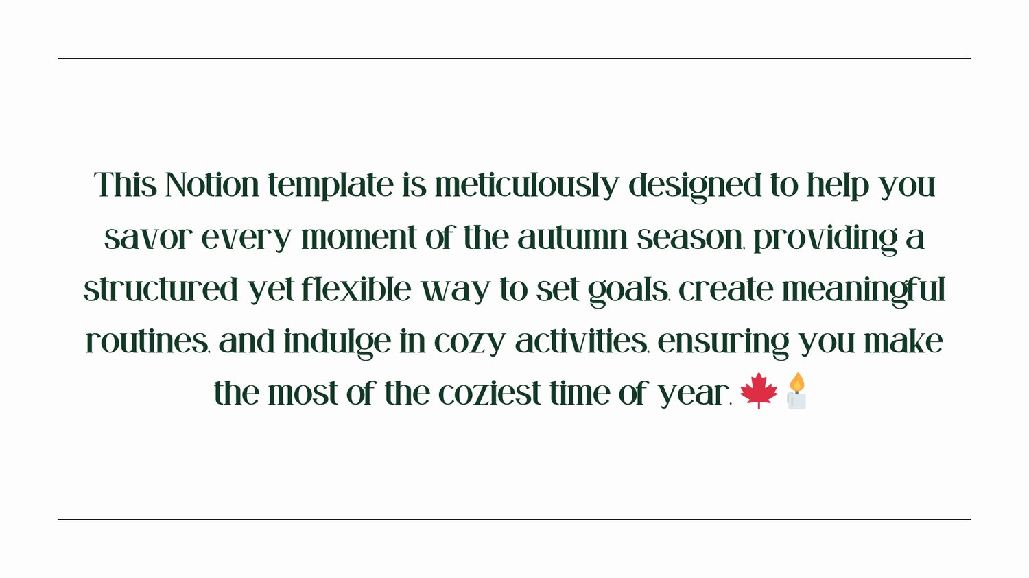 Embrace the cozy season and make the most of every moment with the 'Autumn Planner' Notion template. Your guide to a memorable and well-organized autumn awaits! 🍁