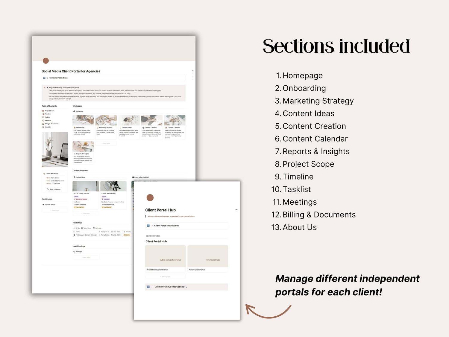 Elevate your client experience with this Notion Client Portal Template for Agencies โ the ultimate Client Portal Hub designed to organize your projects, streamline client onboarding, and simplify your social media management workflow. Whether you're a freelancer or an established team, this all-in-one Client Onboarding Template also functions as a powerful Social Media Planner, helping you manage strategy, content creation, approvals, meetings, and reports in one place.