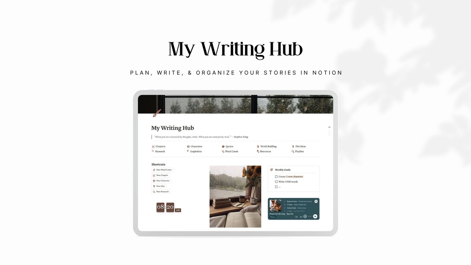 Take your writing to the next level with this Notion Writing Template—the perfect tool for organizing your stories, outlining your novel, and keeping track of every detail. Whether you're crafting a new book, developing characters, or structuring your plot, this Novel Planning Template has everything you need. From a Book Writing Organizer that tracks chapters and word count to a Story Planner designed for seamless brainstorming, this Notion setup is ideal for both beginner and experienced writers. Plan your Novel Outline, structure your Book Outline, and bring your creative vision to life with ease!