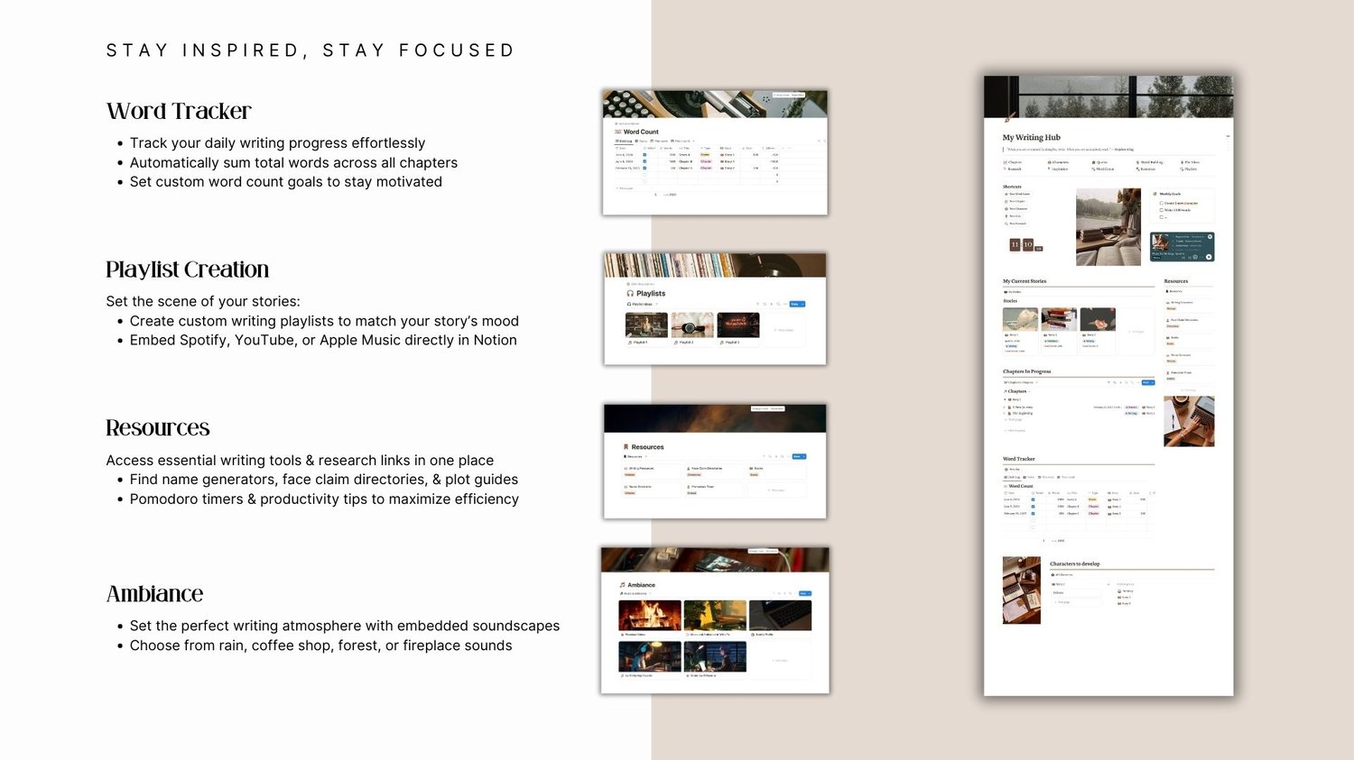 - Playlist & Ambiance – Curate music and background sounds to enhance focus