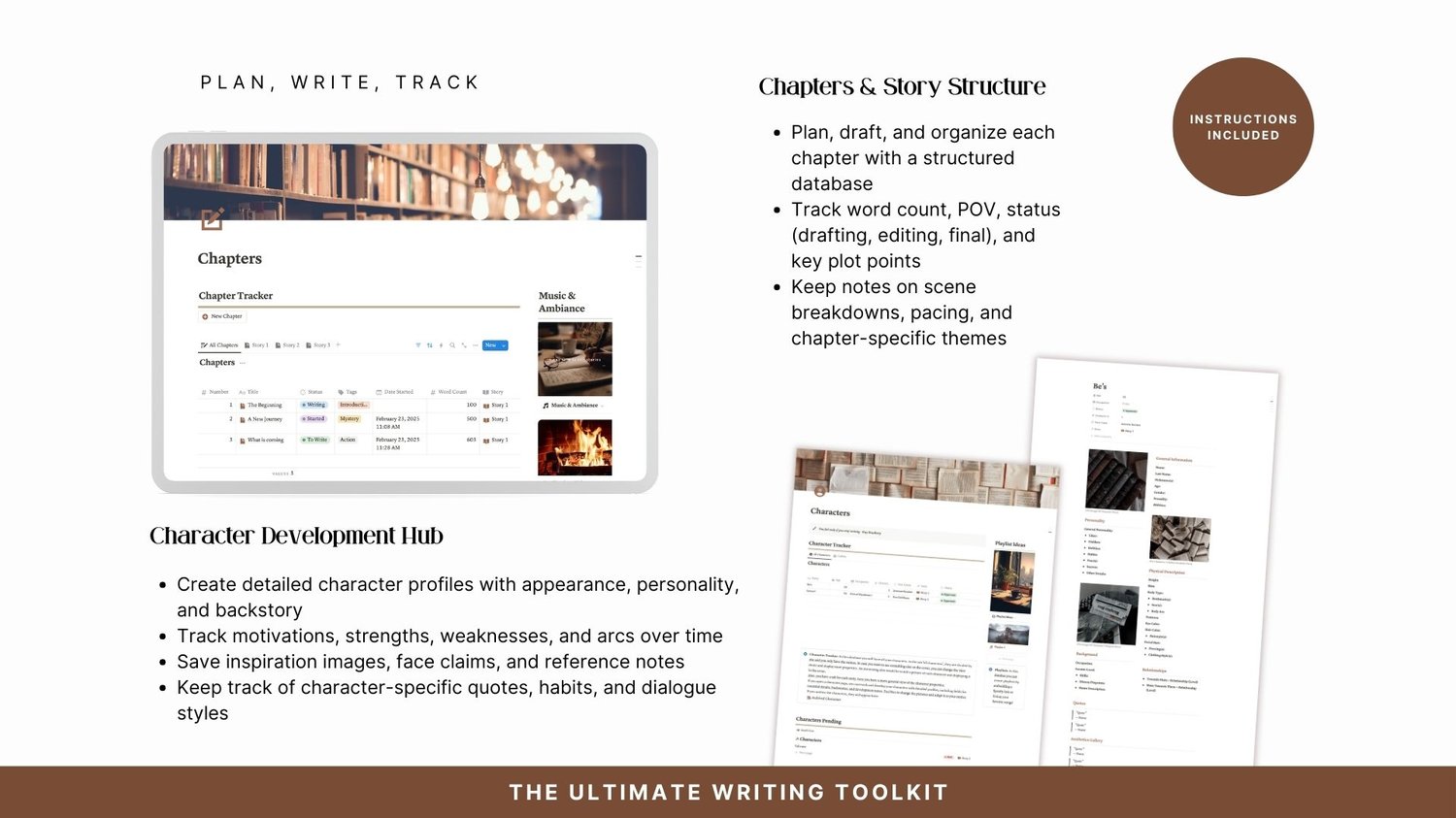 - Chapters & Plot Organizer – Plan your story structure and track progress