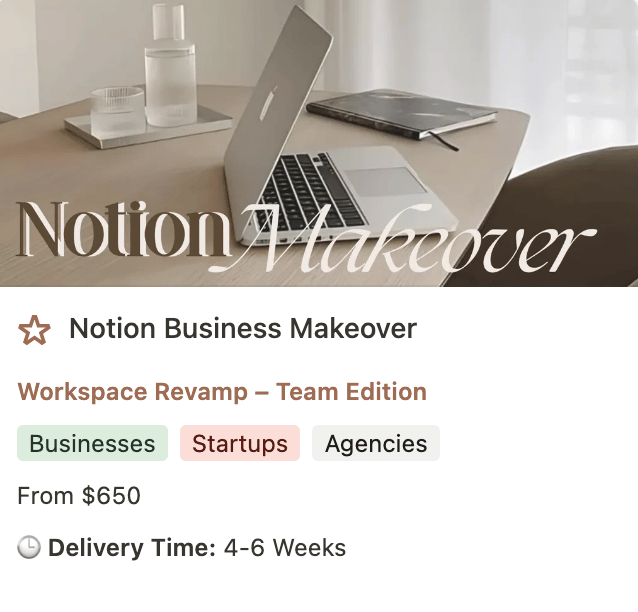 Collaboration meets efficiency in a fully customized Notion workspace for your team. We design a powerful, streamlined, and visually stunning system to help your business stay aligned, organized, and productive.